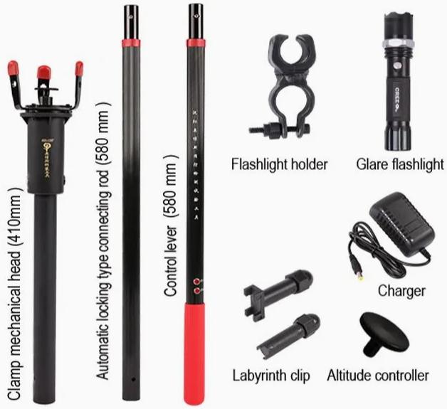 Cây tháo lắp thiết bị báo cháy trên cao được cấu tạo từ nhiều bộ phận. Mỗi bộ phận đảm nhiệm một chức năng riêng nhằm đảm bảo thao tác an toàn và chính xác: